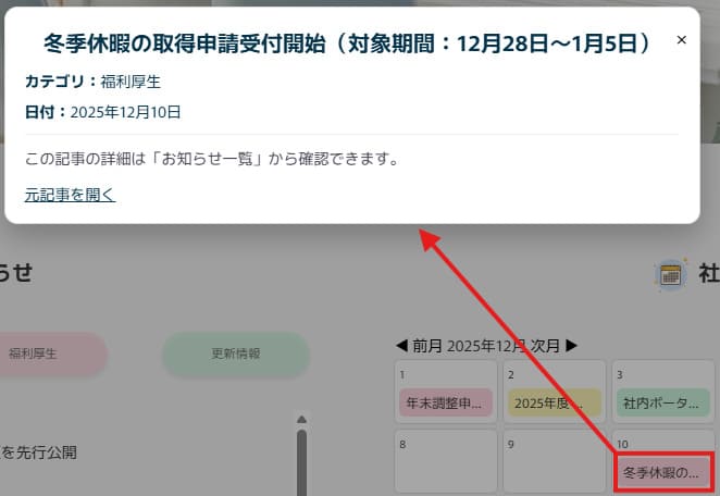 お知らせを更新すると、自動的にカレンダーに反映されるよう工夫しました